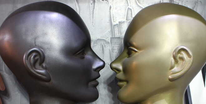 Contrast this with the Polystyrene mannequin heads in iron and brass.